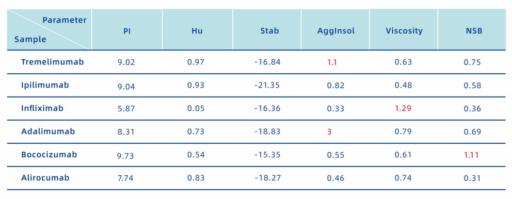 Infliximab and Adalimumab are both marketed antibodies against TNFA, but Infliximab has a higher viscosity [2]. The maximum recommended concentration of infliximab is 4mg/ml [3], which greatly limits its efficacy, while the maximum recommended concentration of Adalimumab can reach 100mg/ml [4]. This is one of the main reasons why Adalimumab can continue to be the best-selling antibody drug of the year, while Infliximab does not. Although fully humanized Adalimumab can be widely used, like mouse-derived Infliximab, it still has serious immunogenicity problems. About 28% of patients will develop drug-resistant antibodies within three years after injection of Adalimumab, which affects efficacy and causes safety problems [5]. The reason is just as predicted by the AlfaDAX online system. Adalimumab is easy to attract each other through electrostatic force and aggregate. Under pressure such as oxidation and stirring, it is extremely easy to produce small aggregated particles of varying degrees. These small aggregated particles of varying degrees are the main reason for causing different degrees of immunogenicity [5].