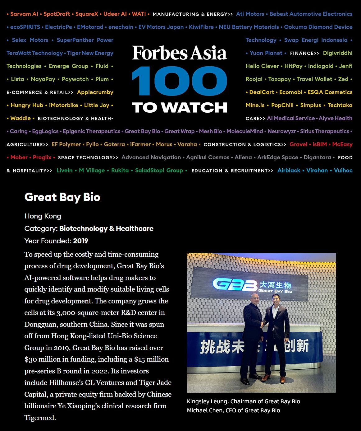 Great Bay Bio was successfully selected for Forbes Asia 100 to Watch 2024 List.