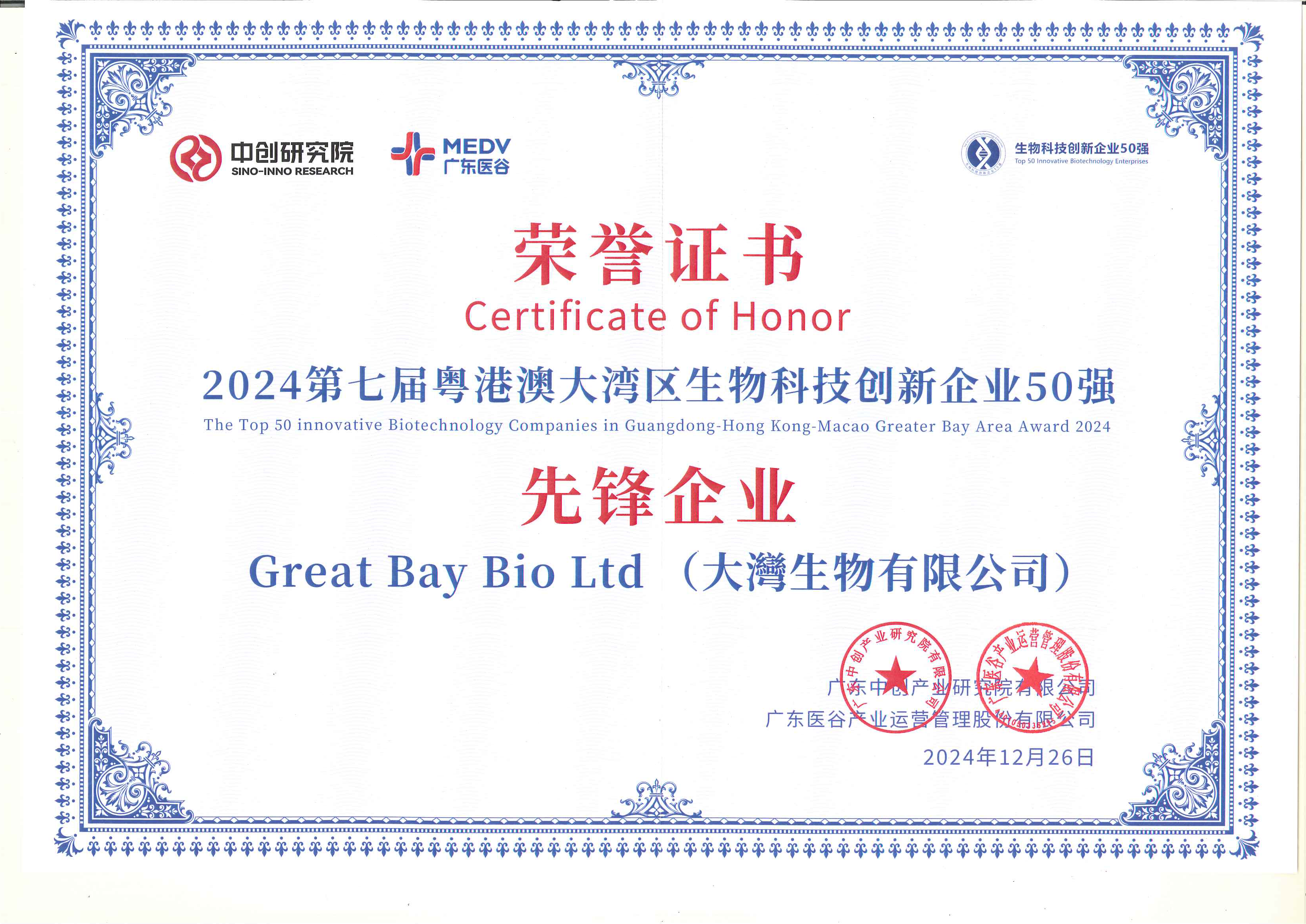 and the 7th Top 50 Innovative Biotech Companies in Greater Bay Area selection