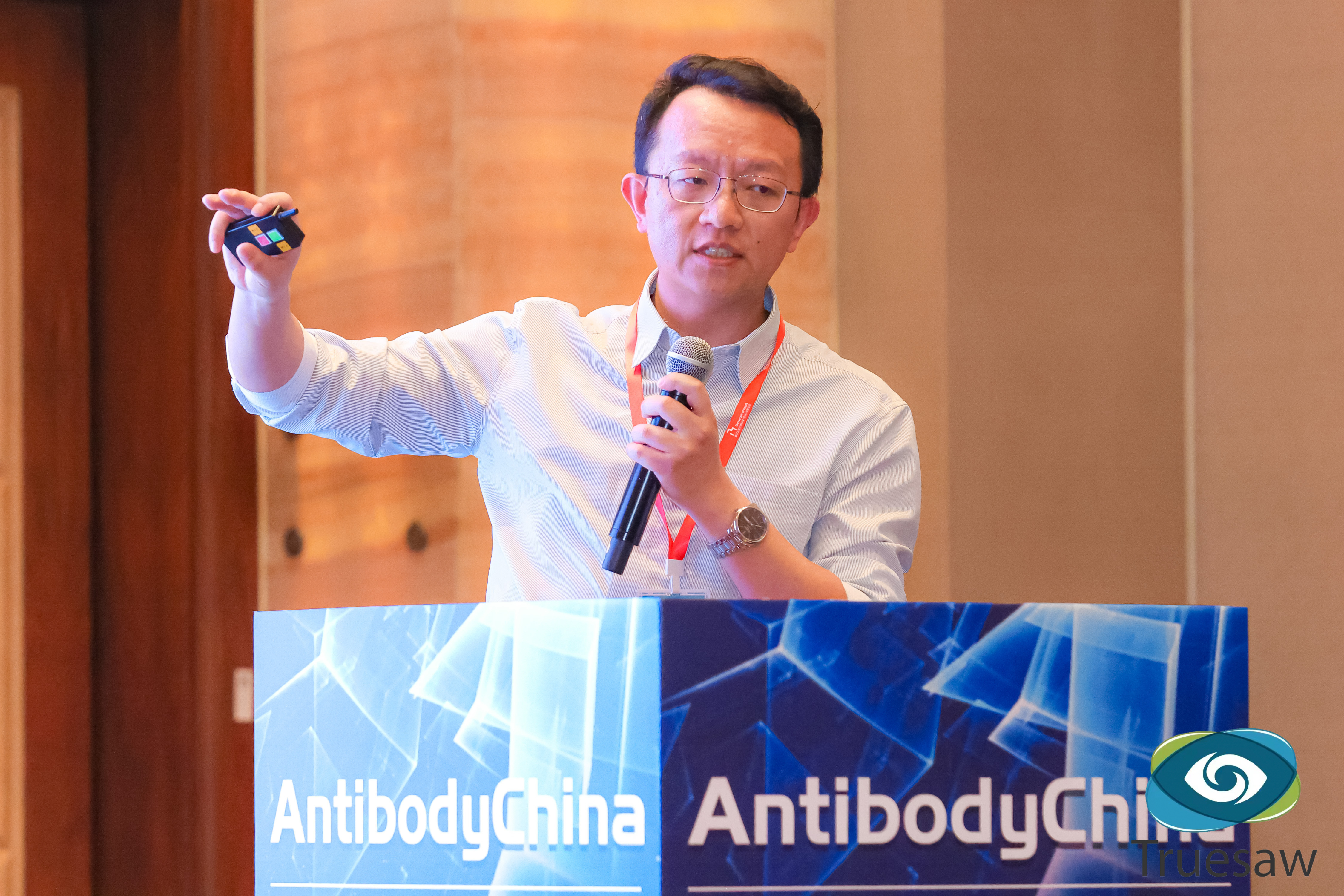大湾生物首席商务官齐凯博士应主办方特别邀请,开展主题演讲,充分展示了大湾生物利用AI赋能定点整合细胞株构建的最新研发成果与商业化进展。现场观众进行了提问,拍照。
