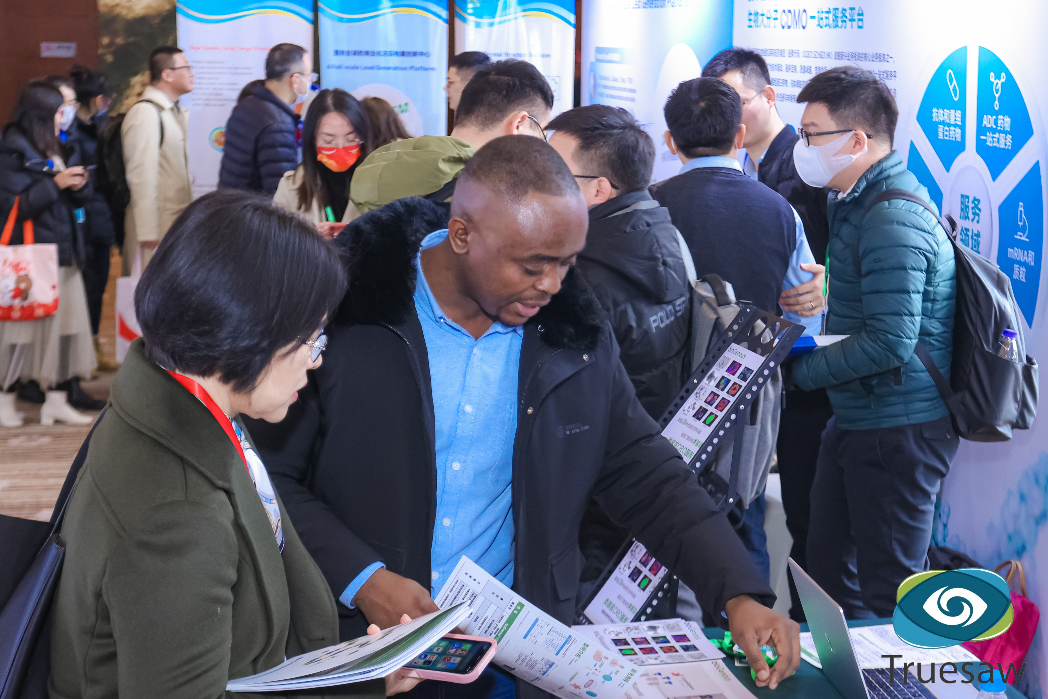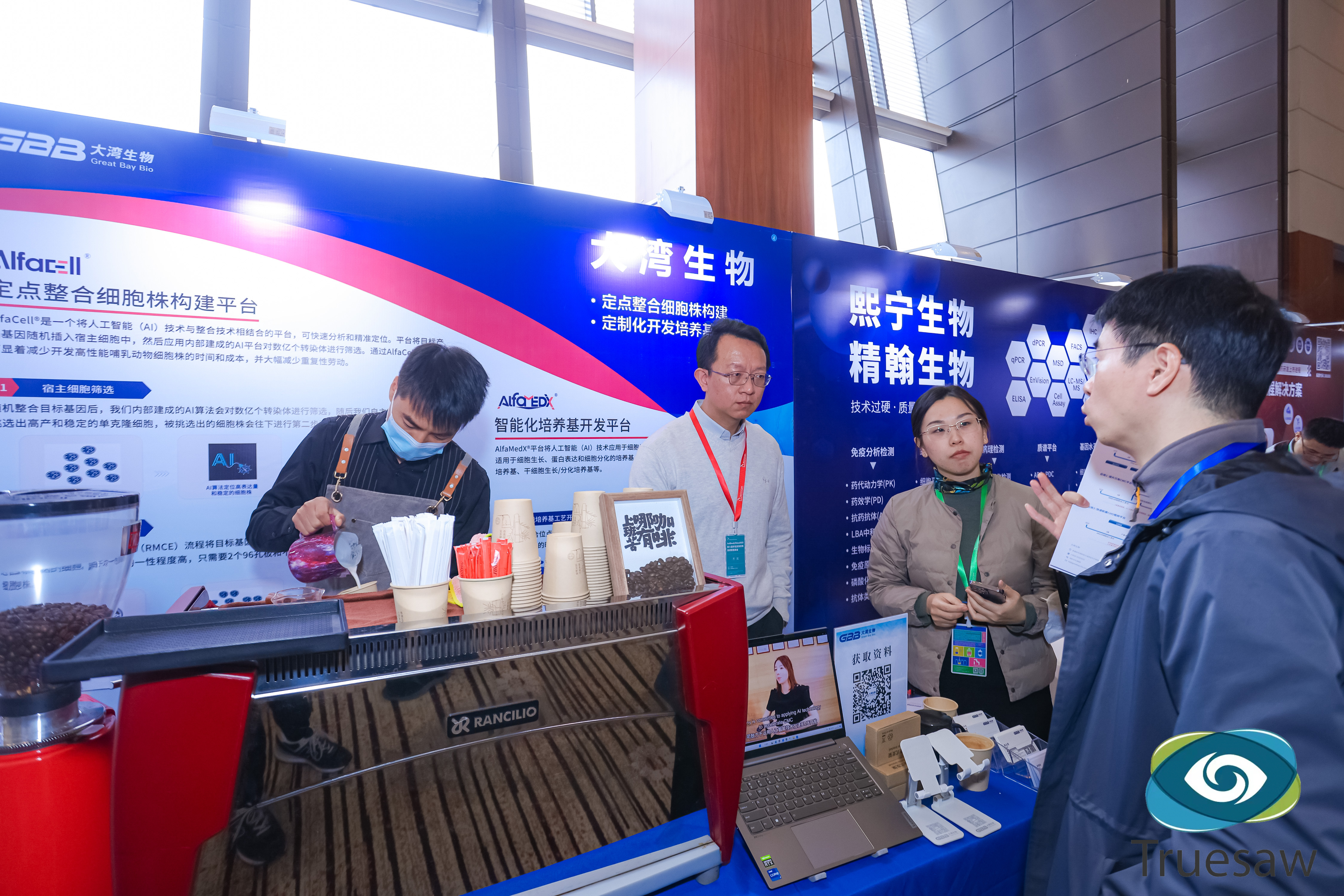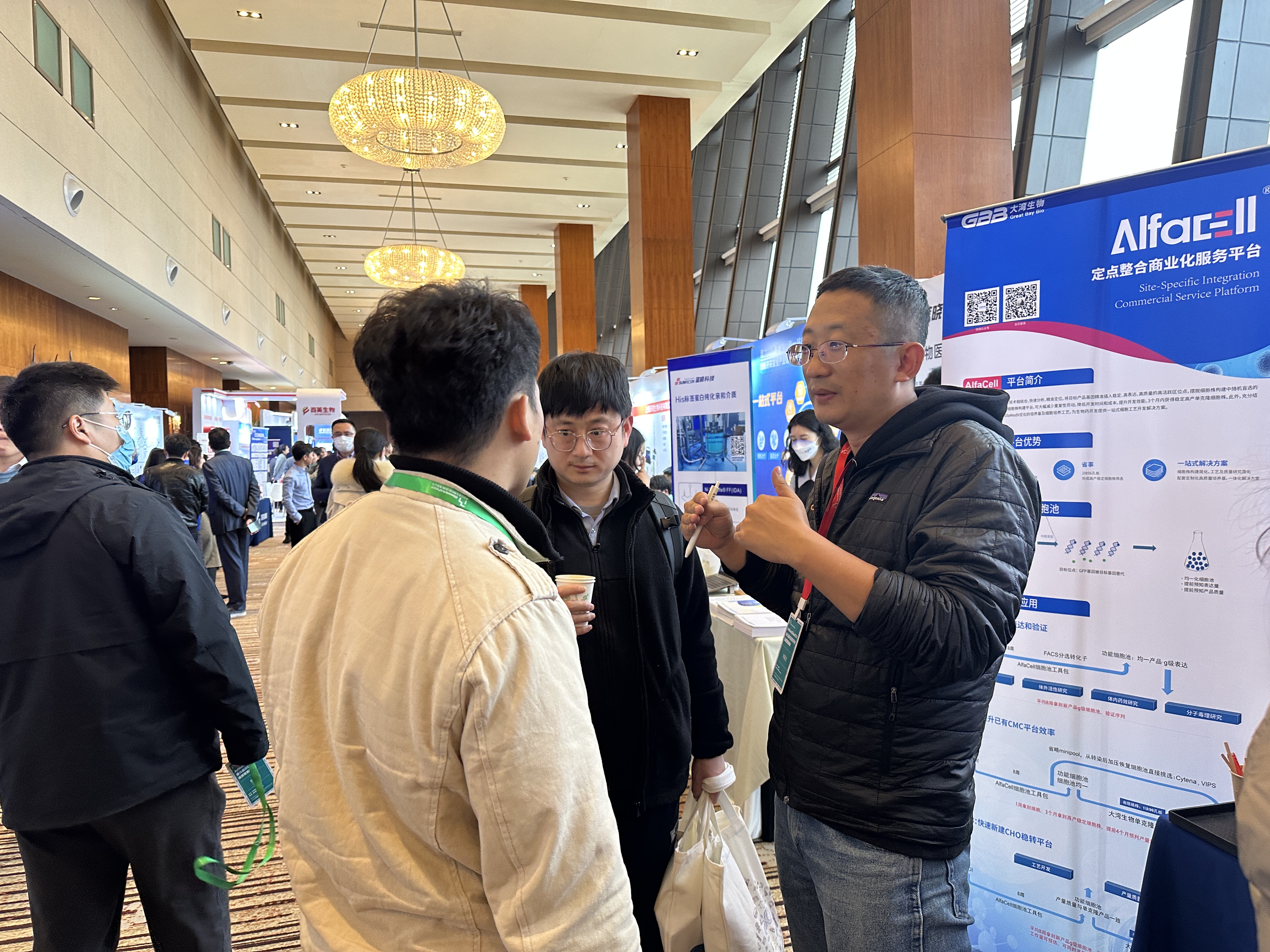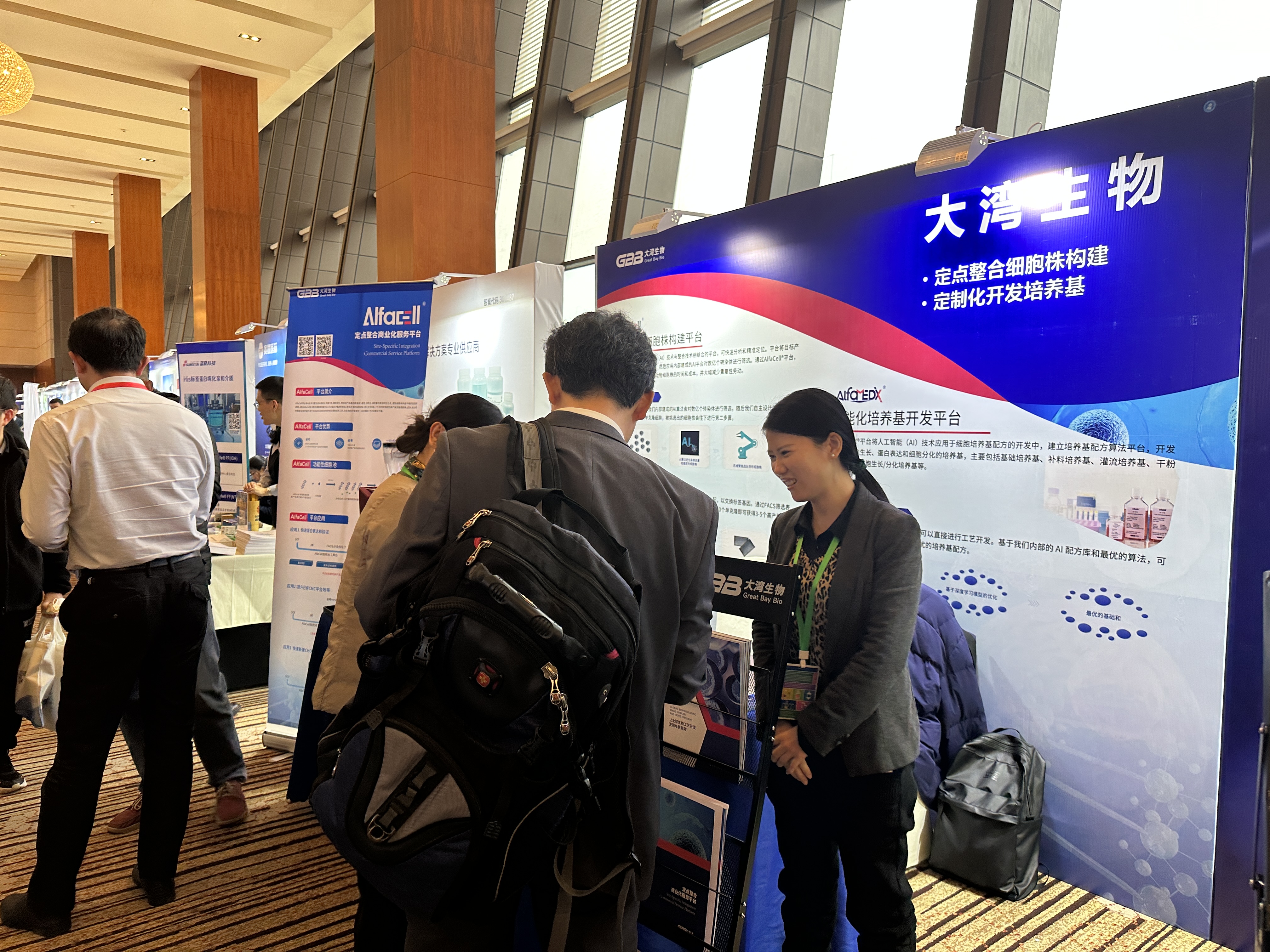 大湾生物展位前,AI赋能生物工艺开发的两个智能化平台——定点整合细胞株构建平台与定制化培养基开发平台,为生物药开发提供一站式细胞工艺开发解决方案,吸引了众多与会嘉宾驻足洽谈,现场反响热烈。