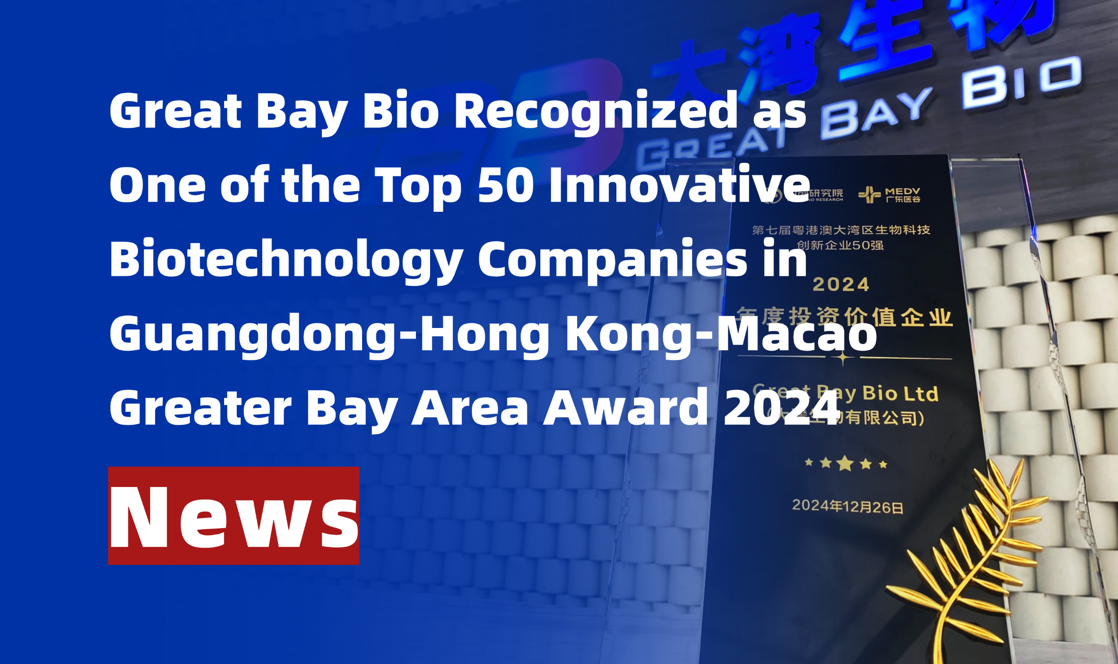 Great Bay Bio Recognized as One of the Top 50 Innovative Biotechnology Companies in Guangdong-Hong Kong-Macao Greater Bay Area Award 2024